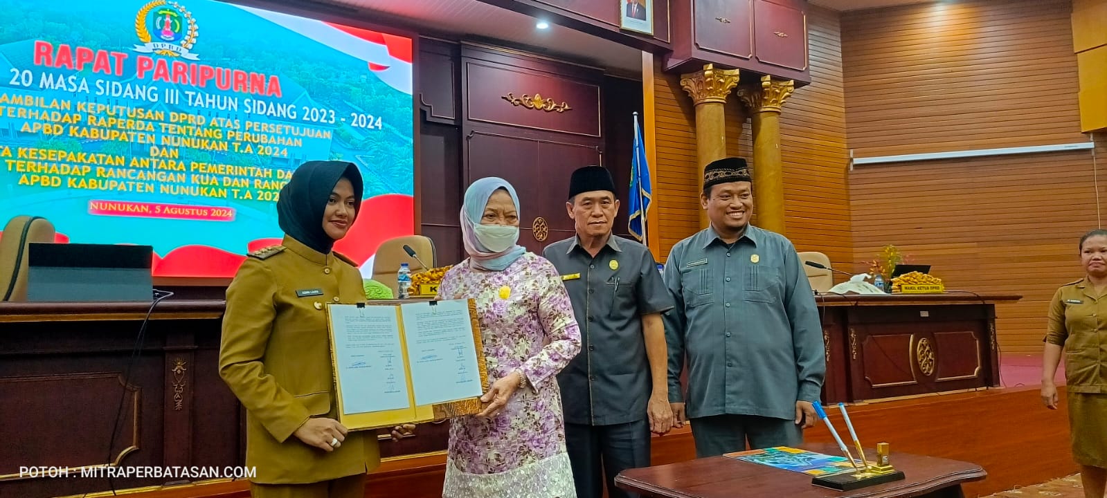 NUNUKAN - Anggota DPRD Nunukan menyetujui Rancangan Peraturan Daerah (Raperda) tentang Perubahan Anggaran Pendapatan dan Belanja Daerah (APBD) Nunukan Tahun Anggaran 2024. Kesepakatan ini dilakukan pada Rapat Paripurna Ke-19 Masa Persidangan Ke III Tahun Sidang 2023-2024.